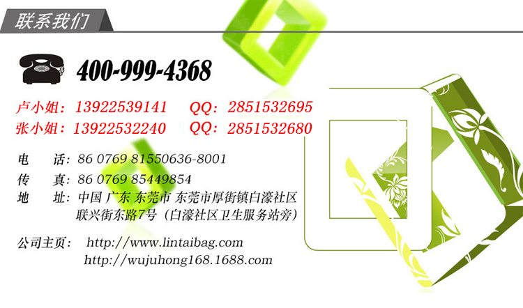 廣東省東莞市虎門鎮(zhèn)白沙泰滔工業(yè)園E棟林泰箱包 電話:13433013383